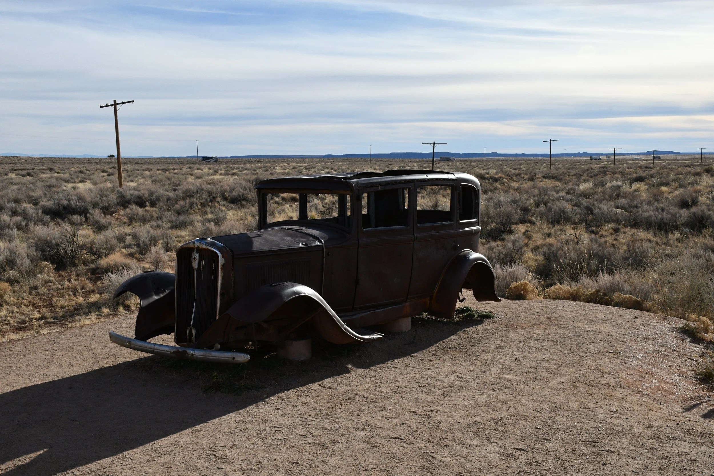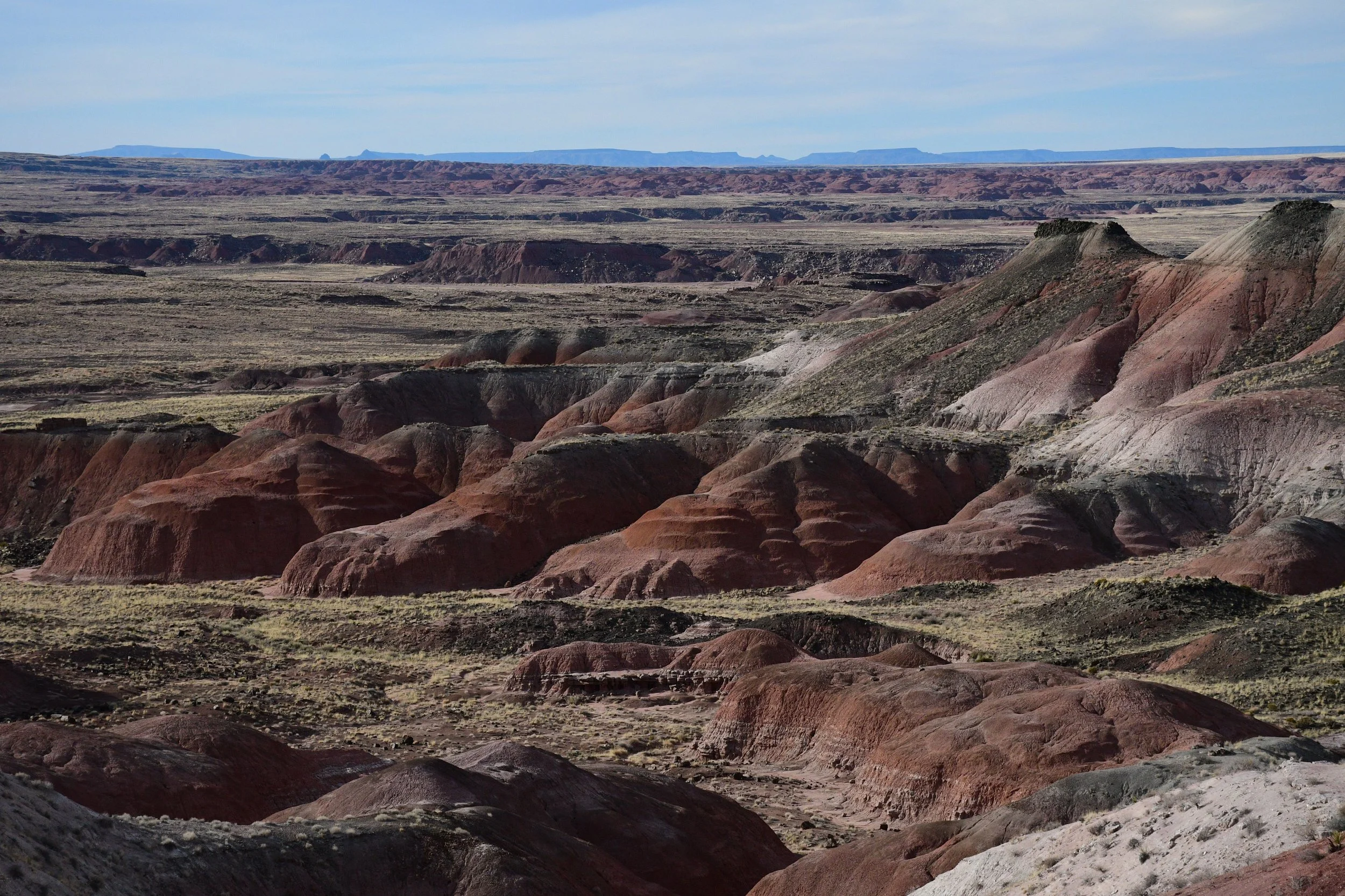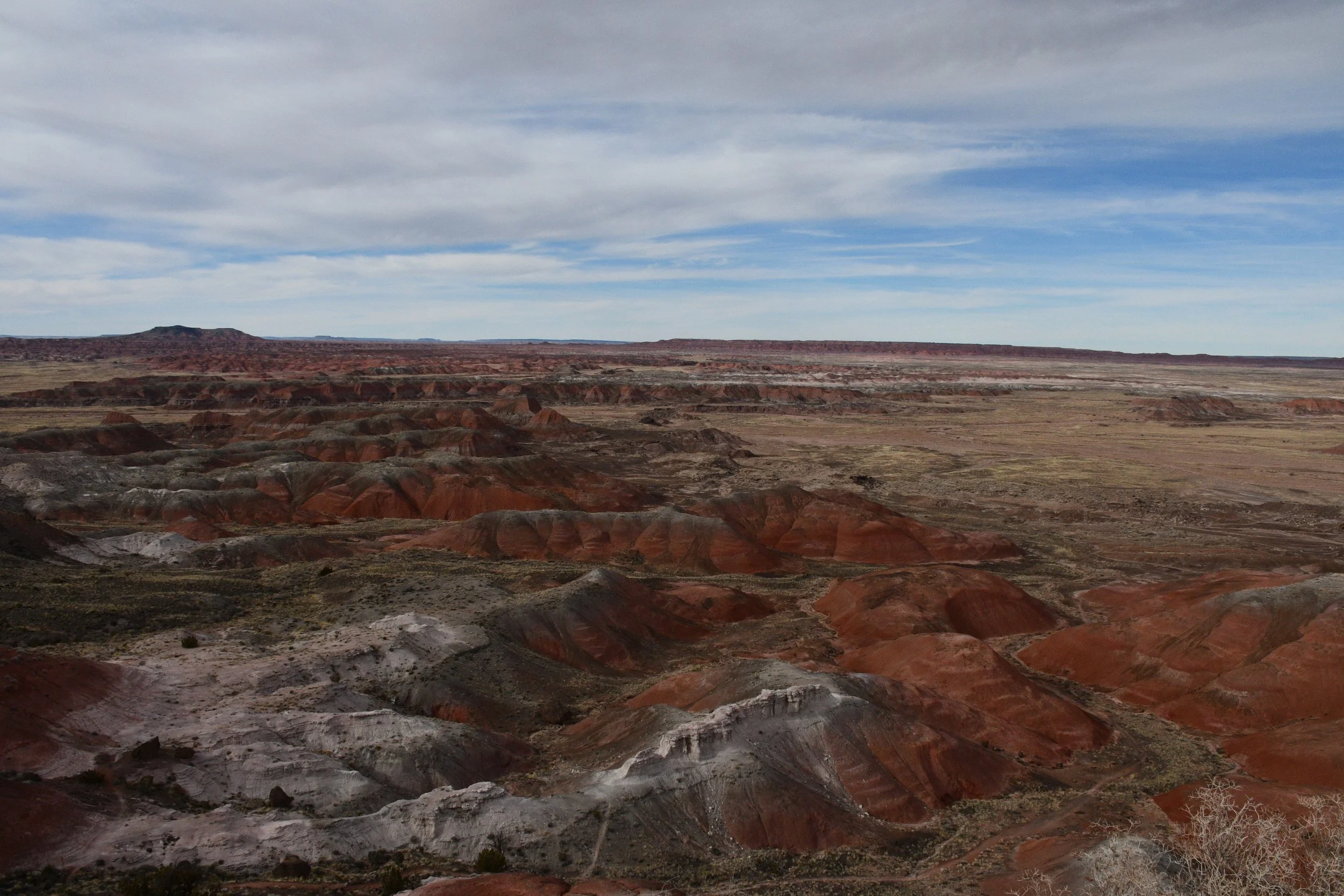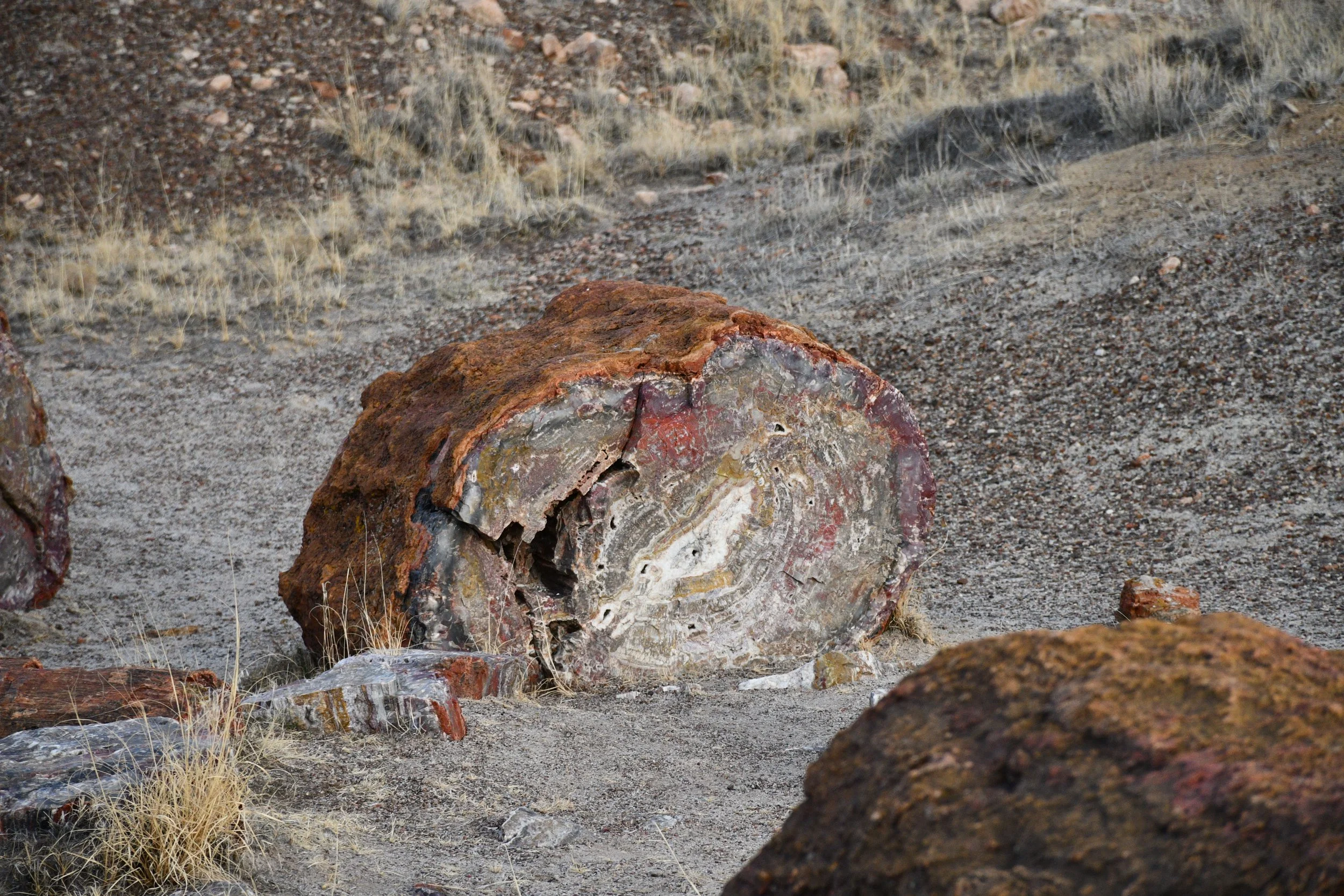 We planned on two days in Petrified Forest, but ended up only having 3 hours to explore before the sun set. We experienced our first major vehicle issues with dead batteries, but didn't let it kill our joy. The petrified logs with incredible colors are everywhere you look.