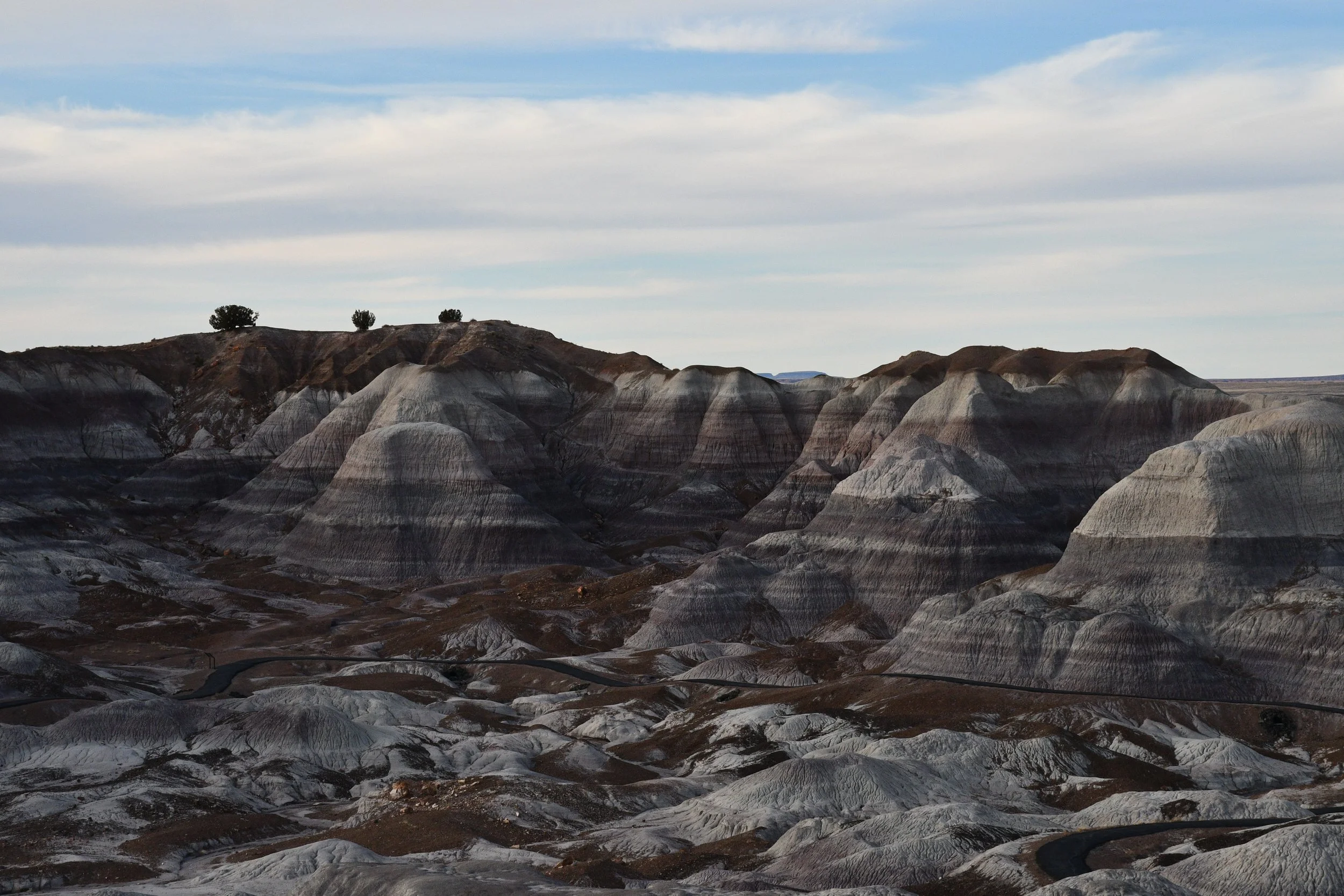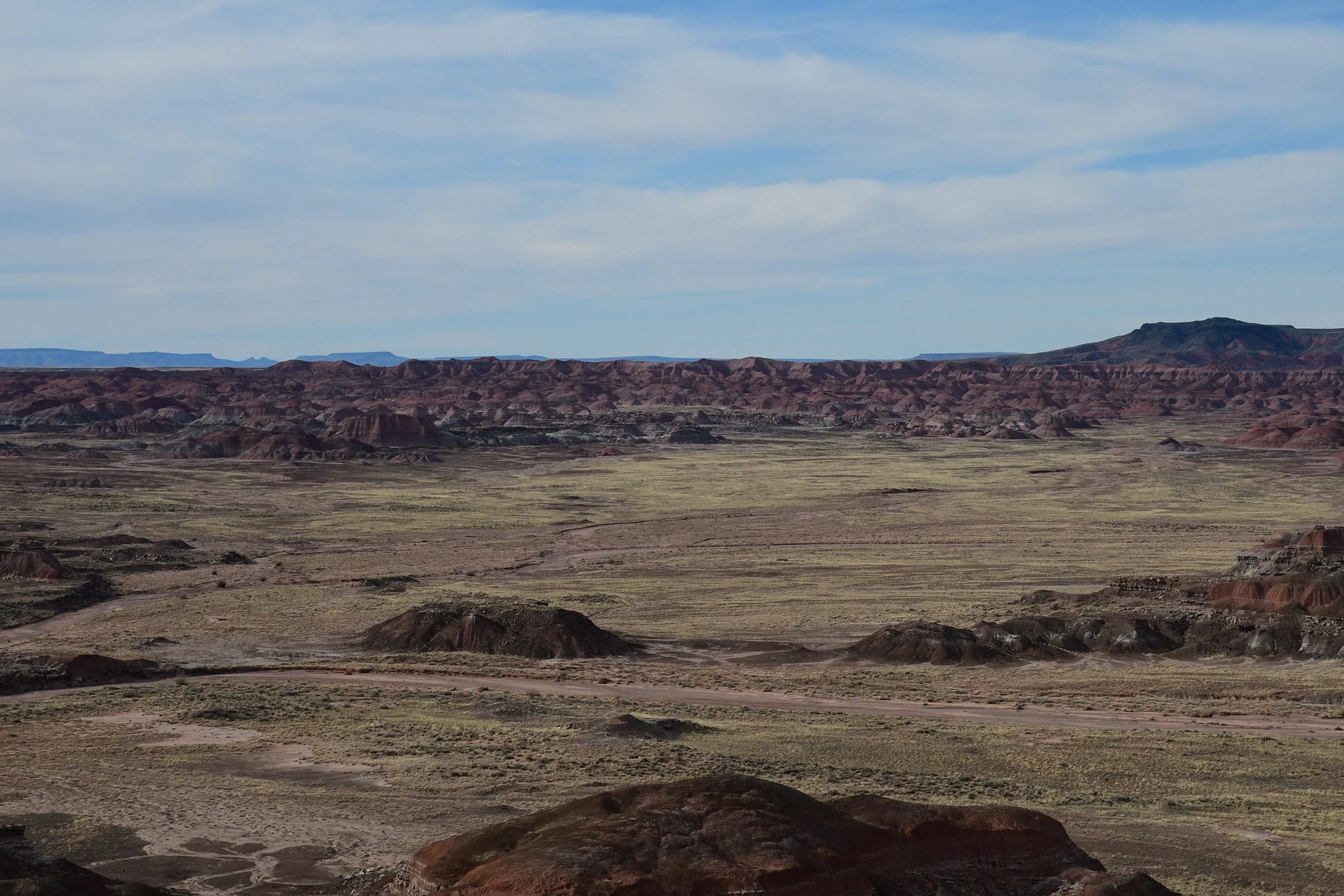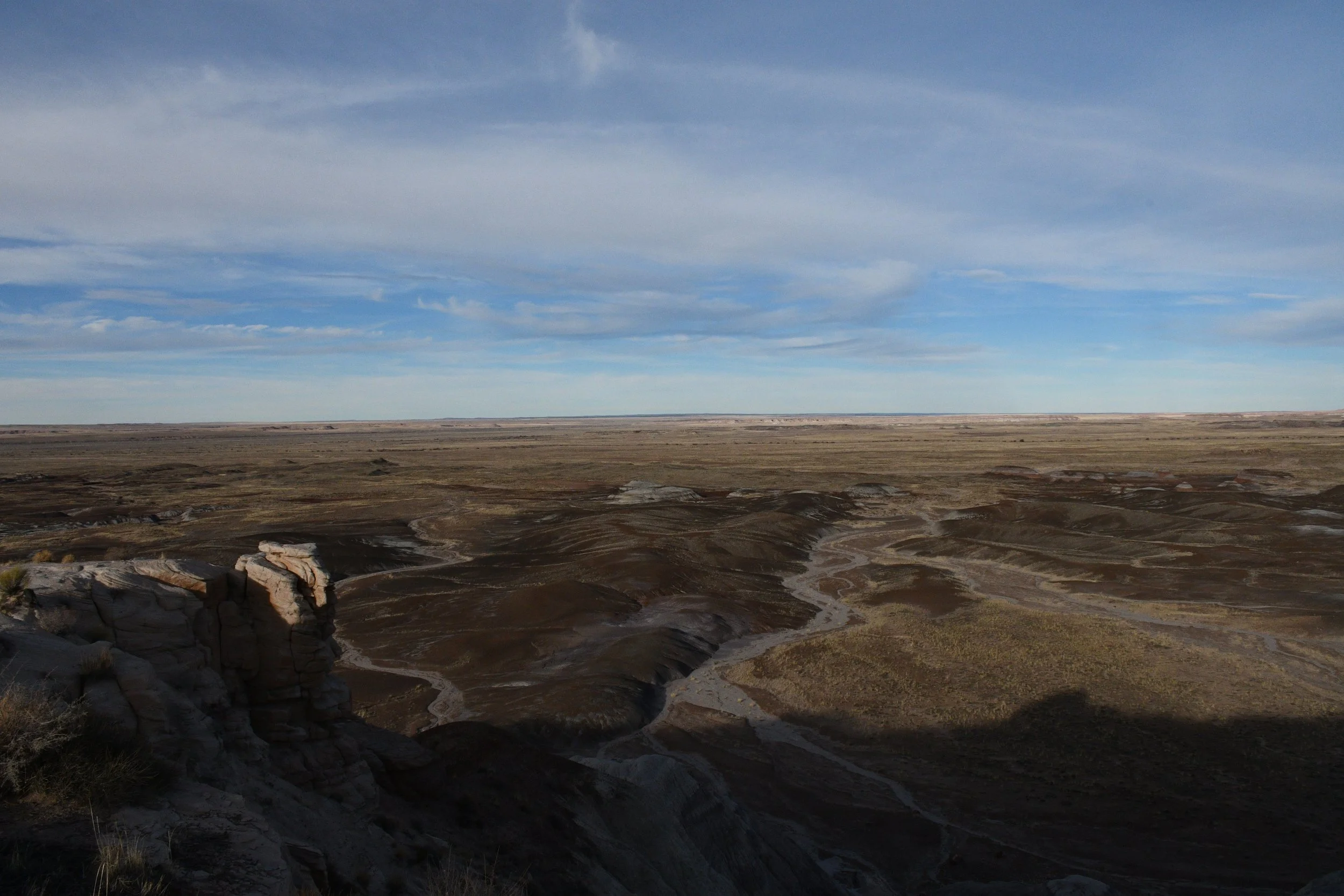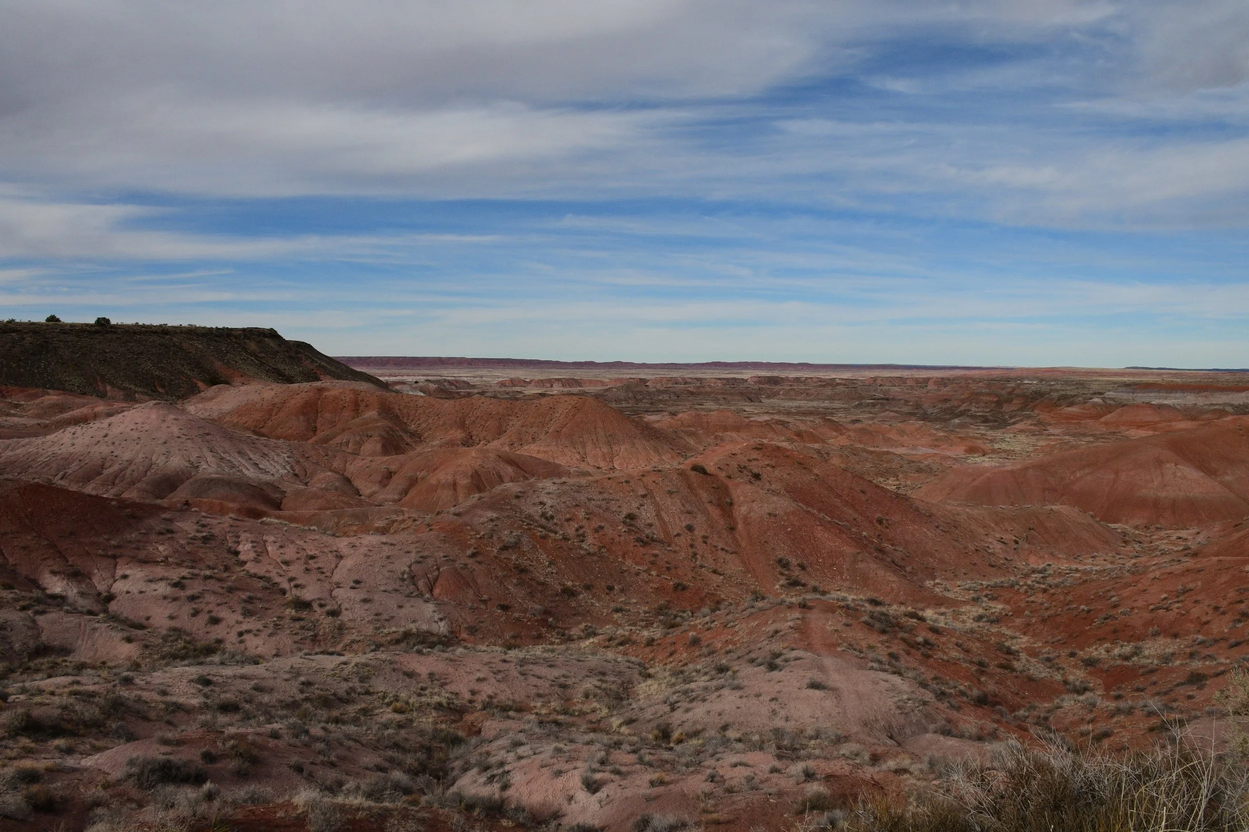 We planned on two days in Petrified Forest, but ended up only having 3 hours to explore before the sun set. We experienced our first major vehicle issues with dead batteries, but didn't let it kill our joy. The petrified logs with incredible colors are everywhere you look.